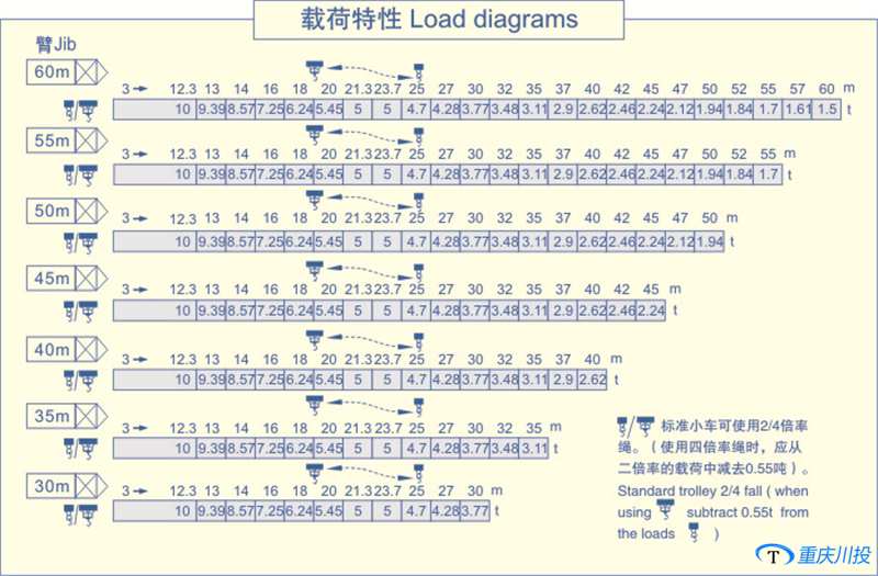 水平臂塔式起重机设计新颖,塔身为片式结构,装拆方便;起升、回转、变幅、行走、顶升等机构均采用国外技术,性能先进可靠。该类塔机具有轨道行走式、固定式、附着式和内爬式多种使用类型。