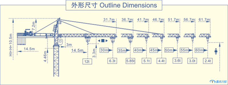 水平臂塔式起重机设计新颖,塔身为片式结构,装拆方便;起升、回转、变幅、行走、顶升等机构均采用国外技术,性能先进可靠。该类塔机具有轨道行走式、固定式、附着式和内爬式多种使用类型。